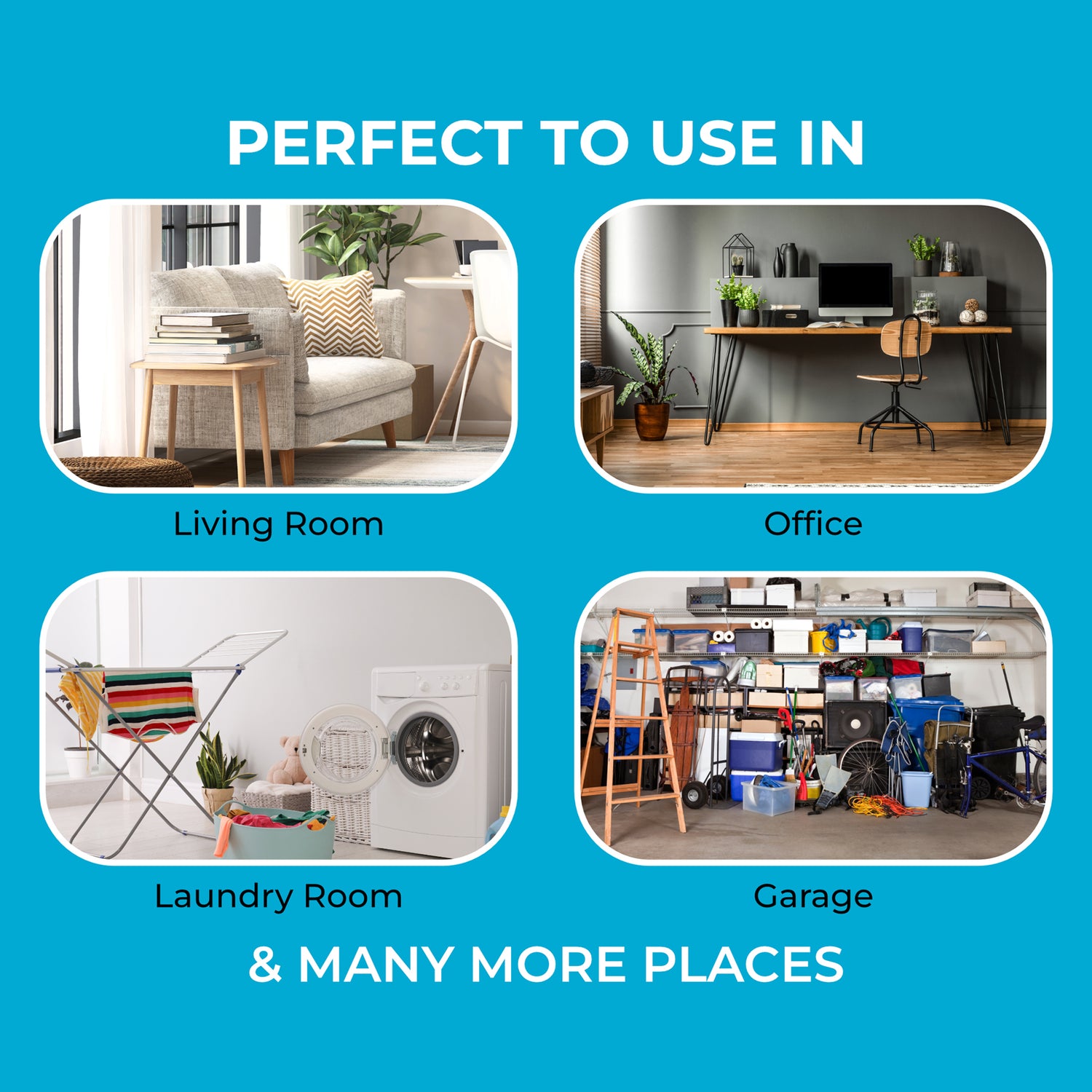 - IDEAL FOR HOME & OFFICE USE - This is the perfect dehumidifier for everyday home or office use. Can be used in the bedroom, living room, kitchen, bathroom, hallway, conservatory, garage, loft, office and more! This versatile machine effectively removes window condensation, improves air quality, prevents damp walls, smells and mould.