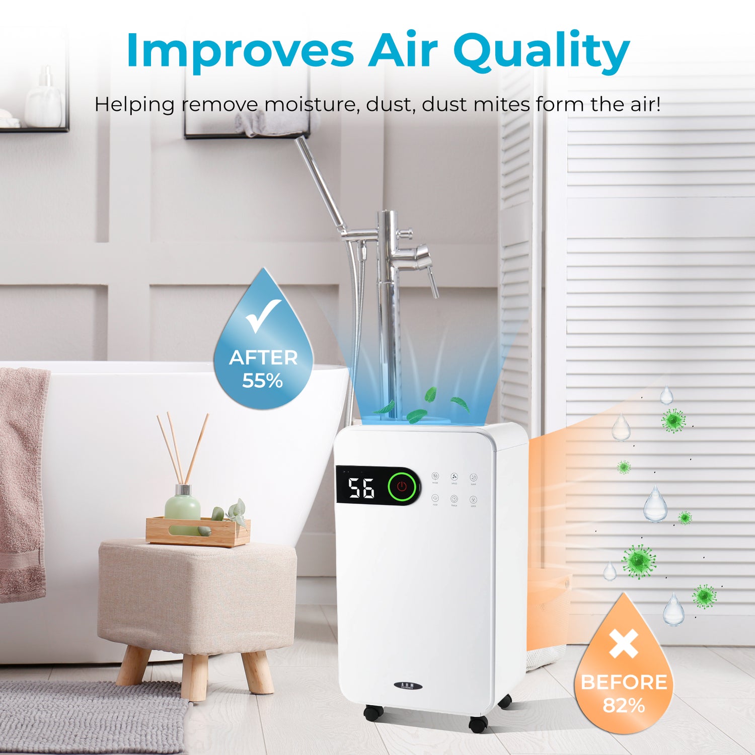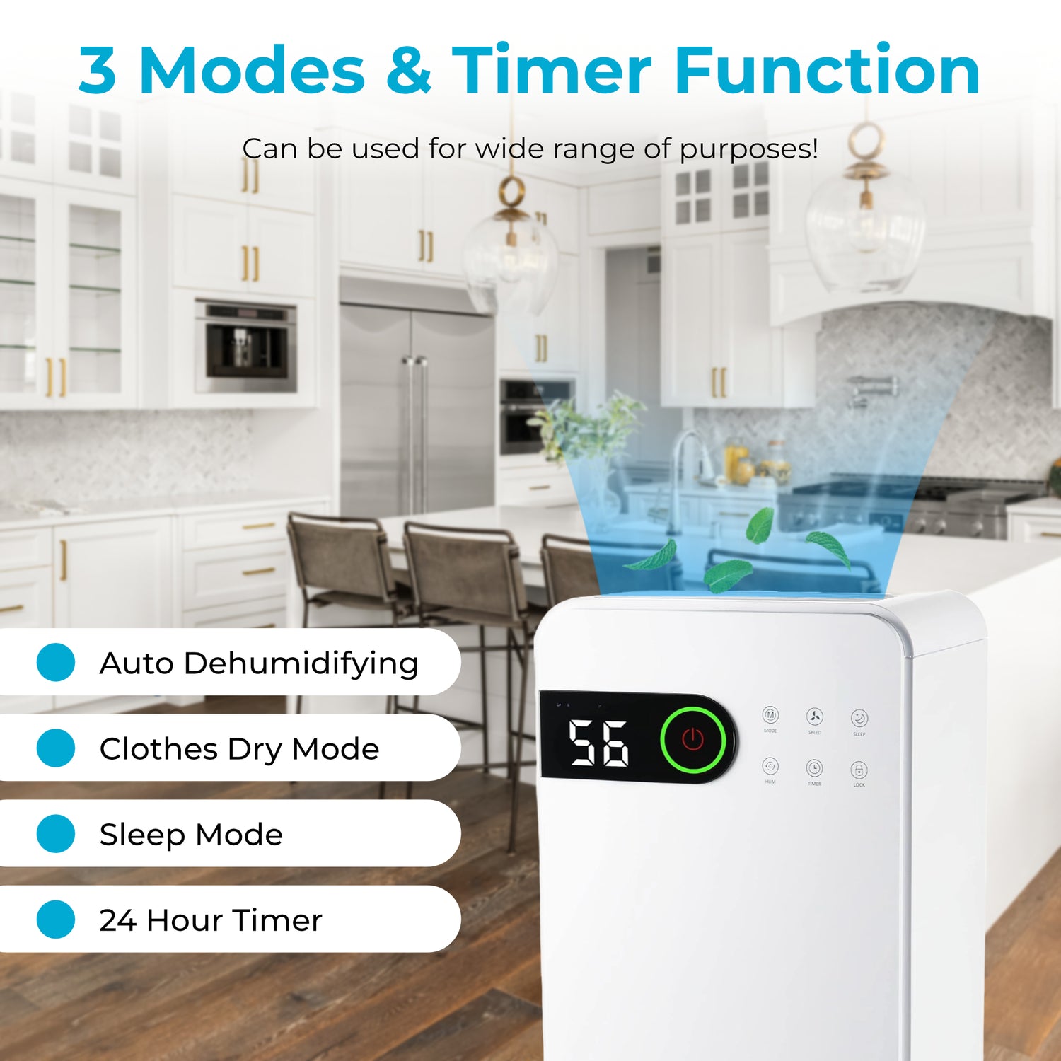 - MOISTURE & DUST REMOVER - The dehumidifier protects your home and belongings by preventing mould growth and controlling the dust mite population. It also purifies the air by filtering dust, bacteria & pollen. Beneficial for those with sensitive allergies - reduces effects of bacteria and other pollutants. MULTIPLE MODES - Equipped with 3 different modes, this multi-function dehumidifier can be used for a range of purposes. The Clothes Drying mode offers a cost-effective way of drying your wet laundry, whilst the quiet Sleep Mode allows usage throughout the night, without disrupting your sleep. Also features an Automatic Mode and a timer function.